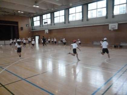 20mシャトルランに向けて 公開日 2024/05/13 更新日 2024/05/13 4年 4年生は体育科の時間に、20mシャトルランをします。まず、準備体操として、ラジオ体操で体を軽く動かしていました。次は、スキップなど、軽く走るウォーミングアップをしました。その後、増え鬼を始めていました。自分が鬼にならないように必死で走り回っていました。 体が温かくなってきたところで、いよいよ20mシャトルラン開始のようです。 いいね(0)
