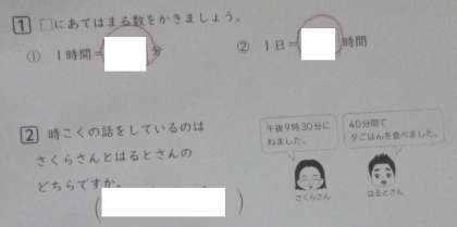 時刻と時間の復習 公開日 2024/05/13 更新日 2024/05/13 3年 3年生は算数科の時間に「時刻と時間」の復習プリントに取り組んでいました。「1時間は□分」□の中には、「60」が入ります。「100」ではありません。 「『午後9時30分』と『40分間』、時刻の話をしているのはどちらでしょう。」間違いやすいところですが覚えていたでしょうか。 いいね(0)