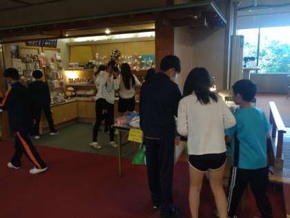 避難訓練です。避難は、2分前に完了しました。 この後、1組と2組交代で、入浴と買い物をしました。