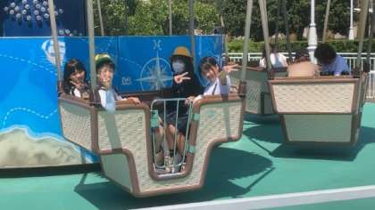 帰りの時刻がきました。バスに乗って、学校へ向かいます。