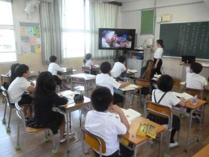 ヤドカリとイソギンチャク 公開日 2024/05/20 更新日 2024/05/20 4年 4年2組では国語科「ヤドカリとイソギンチャク」を学習していました。ヤドカリとイソギンチャクは、互いに協力し合って生きています。ヤドカリがどうやってイソギンチャクを自分の貝殻に着けているのかを読み取っていました。文章だけではもう一つイメージが浮かびにくいようですが、実際の映像を観ると、説明文の内容がより分かったようです。 いいね(0)