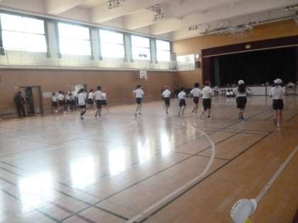 6年生は体育科の時間に「20mシャトルラン」に取り組んでいました。開始から一定時間内で20mを往復します。徐々に時間の間隔が短くなり苦しくなってきます。それでも、簡単にはあきらめぜ、粘りづよく走っていました。