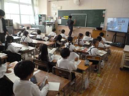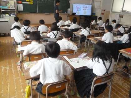1年生は算数科の時間に「6を つくろう」に取り組んでいます。おはじきが6個あって、数当てをします。「右手に1個のおはじき、では左手には何個あるでしょうか。」など、クイズのようにして6の構成について考えていきます。「6は1と□」「6は2と△」……、早く慣れてほしいと思います。
