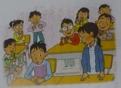 6年2組は道徳科「言葉の贈り物:に取り組んでいました。一郎は、落とした消しゴムを隣の席のすみ子に拾ってもらって感謝の合図を送りました。それを近くの席の友だちにからかわれたことをきっかけに、一郎はすみ子へ冷たい態度をとるようになりました。しかし、一郎の誕生日に、すみ子から一郎の良いところについて言葉かけがありました。周りからは拍手が起こりました。