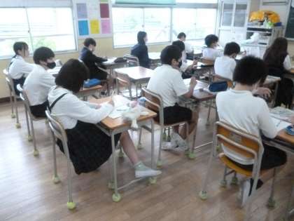 約分 公開日 2024/05/27 更新日 2024/05/27 6年 6年1組では算数科の時間に「約分」について学んでいました。「5/6×9/10」を計算します。「45/60」まで計算してから約分するのと、計算の途中で約分するのと、答えが変わるのかどうかを確かめていました。少しでも簡単に計算できる方法に慣れてほしいです。 いいね(0)