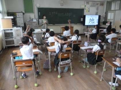 「国」「地」 公開日 2024/05/31 更新日 2024/05/31 2年 2年2組では国語科の時間に新出漢字「国」「地」を習っていました。「くにがまえ」の中に「玉」をバランスよく書くことが難しいでしょうか。「地」では、4画目の斜め具合、5・6画目のかき初めの位置などが難しいようです。何度も練習して、うまく書けるようにがんばってほしいです。 いいね(0)