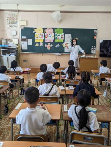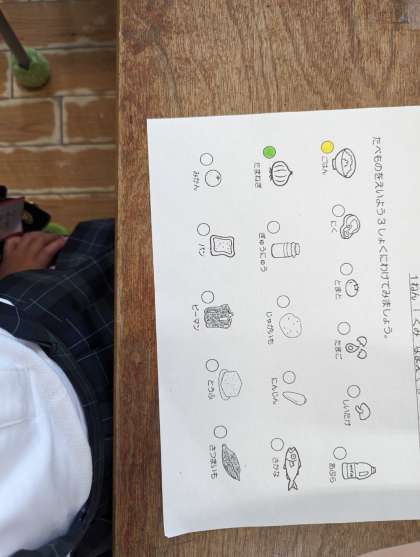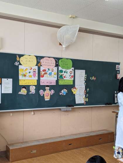 1年生食育授業「たべものはたらきについてしろう」 公開日 2024/06/05 更新日 2024/06/05 その他 食育紙芝居を見たあと、食べ物は働きによって、栄養3色のグループに分かれることを学習しました。そして毎日の食事で栄養3色そろえて食べることの大切さを伝えます。その後、その日の給食に入っている食べ物を色分けしたりワークシートを使って、色ぬりをして確認しました。当日の給食は頑張って完食でした。 いいね(0)