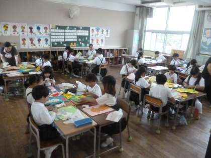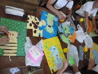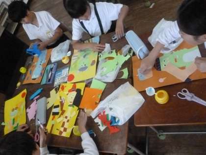 割りピンを使って 公開日 2024/06/07 更新日 2024/06/07 3年 3年生は図画工作科の時間、貼り絵で動物を作っていましたが、よく見ると腕(前足)が360度自由に動いています。割りピンを使って、360度動くように工夫をしていました。 この後、背景を色折り紙できれいに貼り合わせて仕上げていました。 いいね(0)