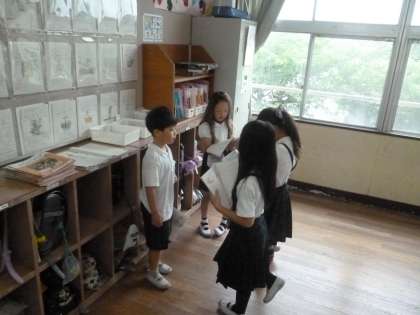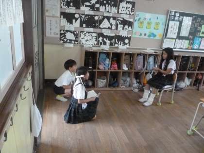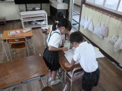 名前を みてちょうだい1 公開日 2024/06/13 更新日 2024/06/13 2年 2年2組では国語科「名前を みてちょうだい」を学習してきました。明日はグループごとに朗読劇を発表するようで、グループに分かれて何度も練習していました。中止をしたり、教え合ったり、とても仲が良く、朗読を楽しんで練習しているように感じました。明日の学習参観、がんばってほしいです。 いいね(0)