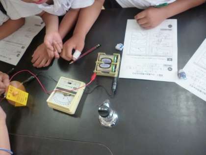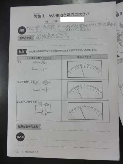 乾電池の数やつなぎ方 公開日 2024/06/17 更新日 2024/06/17 4年 4年2組では理科の時間に、乾電池の数やつなぎ方と電流の大きさとは関係があるのかを実験で調べていました。電流の大きさは、電流計だけでなくモーターの回転の速さでも大小を確かめることができます。乾電池のつなぎ方の違いは、わかったでしょうか。 いいね(0)