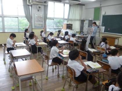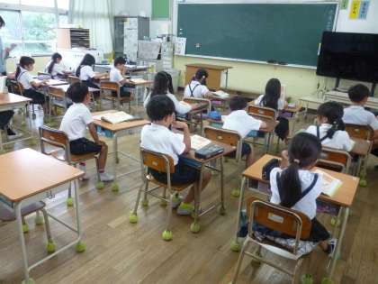 えっちゃんが大きくなった2 公開日 2024/06/17 更新日 2024/06/17 2年 先週朗読大会をしたときに、えっちゃんが「わたしの ぼうしを かえしなさい。」と言った時の声の大きさや強さを思い出して、えっちゃんの気もちを考えました。 最後の6場面、えっちゃんは、あっこちゃんに何と言ったのかを考えました。帽子が返ってきて、「うれしかった気もち」や「ほっとした気もち」が表れる言葉が発表されました。 いいね(0)
