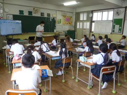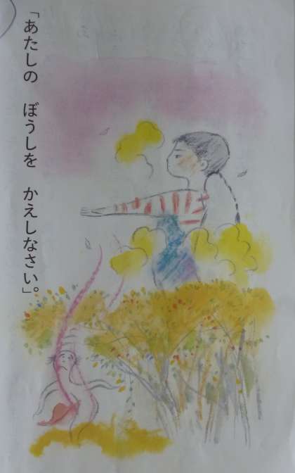 えっちゃんが大きくなった1 公開日 2024/06/17 更新日 2024/06/17 2年 2年生では国語科「名前を見てちょうだい」を学習してきました。本時は第5場面、帽子を拾った大男と悦ちゃんのやり取りの場面です。初発の感想では「えっちゃんから湯気が出て、大きくなるのはびっくりした。」「大男が風船みたいにしぼむのが不思議だった。」など、子どもたちの感想が多かった場面です。子どもたちは思ったことや考えたことを楽しそうに交流していました。 いいね(0)
