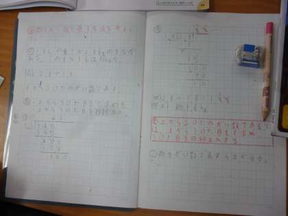 商をがい数で表す 公開日 2024/06/18 更新日 2024/06/18 5年 5年2組では算数科「小数のわり算」を学習しています。前時では、あまりのある筆算の計算の仕方を学習しました。本時では「商を2ケタのがい数で表しなさい。」などが問われます。「2ケタの概数で表しなさい。」「2けた目を四捨五入しなさい。」紛らわしいですが、しっかり気をつけてほしいです。 いいね(0)