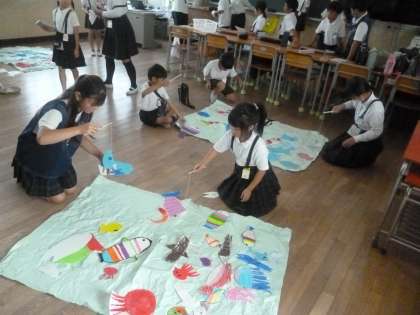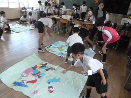 写真は、6班「魚釣り」の様子です。