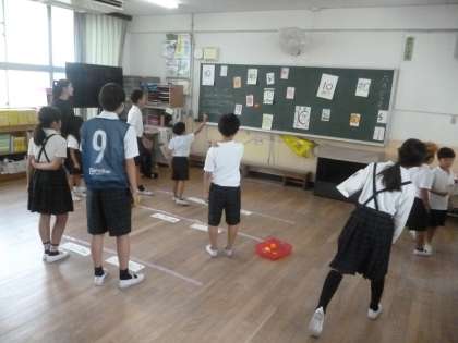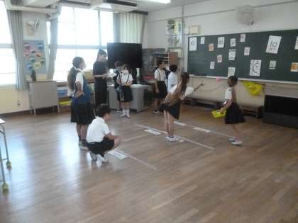 写真は、5班「的あて」の様子です。