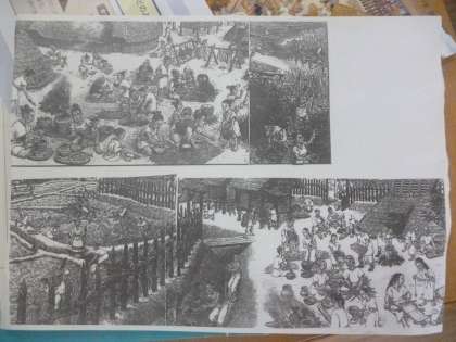 縄文時代の衣食住 公開日 2024/06/24 更新日 2024/06/24 6年 6年2組では社会科の時間に縄文時代のくらしについて調べていました。縄文時代の想像図が配られ、特に衣食住に着目して、気がついたことを出し合っていました。「火を使っている」「木の実を拾っている。食べ物にしているのかなあ。」などの意見が出てきました。 その下の弥生時代の想像図は、縄文時代とはかなり違うようです。 いいね(0)