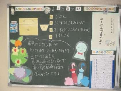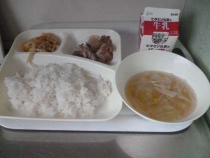 6月26日(水)の給食は、ご飯・牛乳・豚肉のゴマみそ焼き・すまし汁・切り干し大根の炒め煮です。