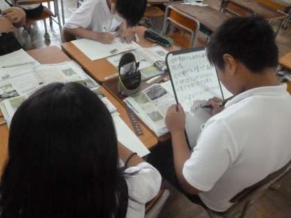 輪中 公開日 2024/06/26 更新日 2024/06/26 5年 5年2組では社会科の時間に輪中(集落や耕地の周囲を堤防で囲んだところ)で行われている農業について学習します。まず、輪中では昔どのような農業が行われていたのかを班で調べ、出し合っていました。班ごとにホワイトボードに書いて発表しました。 この後、映像で確認しました。輪中の特徴を生かした農業でしたが、課題も大きかったようです。 いいね(0)