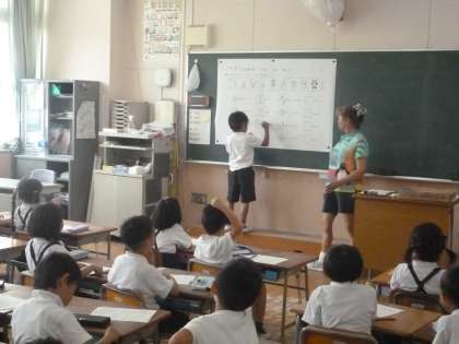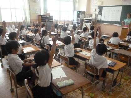 なんばんめ 公開日 2024/06/26 更新日 2024/06/26 1年 1年生では算数科「なんばんめ」を学習しています。プリントでは、バス停に動物が並んでいます。「まえから〇ばんめ」「うしろから●ばんめ」を答えます。答え合わせは、黒板に貼ってある拡大プリントでします。前で答えを書きたいと、子どもたちは意欲的に手を挙げていました。 いいね(0)