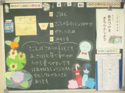 6月28日(金)の給食は、ご飯・牛乳・さごしのおろし醤油かけ・みそ汁・野菜炒めです。