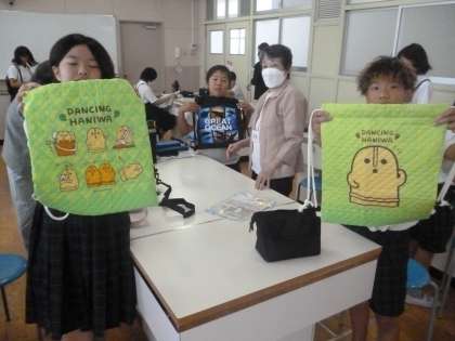 ナップサック作り3 公開日 2024/07/01 更新日 2024/07/01 5年 2時間経って、ナップサックができ上がってきました。素敵なでき上がり具合に子どもたちは満足そうです。できた班から、教えていただいた感想を生涯学習ルームの方に話していました。最後に、班ごとに記念写真を撮って、子どもたちからお礼の言葉を伝えました。 生涯学習ルームの方々、ご多用な中、ありがとうございました、 いいね(0)