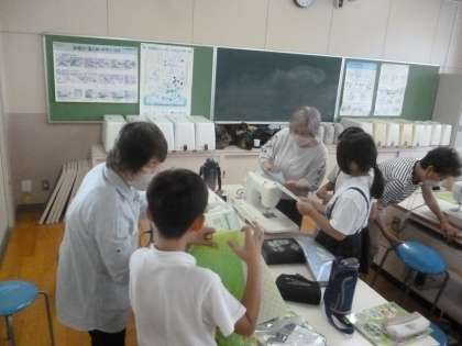 ナップザック作り1 公開日 2024/07/01 更新日 2024/07/01 5年 7月1日(月)2・3時限目に、鶴町小学校生涯学習ルームの方々がゲストティーチャーにお越しいただき、5年1組で家庭科「ナップザック作り」をしました。 まずは各グループに分かれてお世話になる方へ自己紹介をして、親睦を深めていました。 いいね(0)