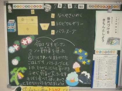 7月2日(火)の給食は、夏野菜飯・牛乳・パワースープ・トロピカルゼリーです。本日の献立は、令和5年度学校給食献立コンクール優秀賞に選ばれたました。だんじりのような夏祭りを盛り上げるため、夏野菜をたくさん食べて体力をつけるように工夫されています。彩りも考えて、お祭り気分を味わえるようになっています。