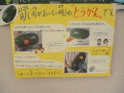 パワースープは、にら・とうがん・トマトは夏バテを防ぐ野菜です。味は、トマトの酸味が効いています。