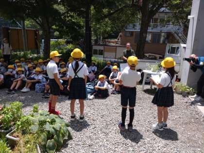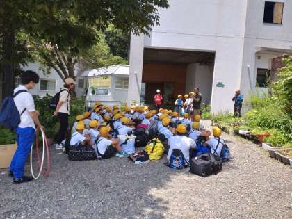 宿舎、グリーンホテルやまなみに到着しました。開舎式です。
