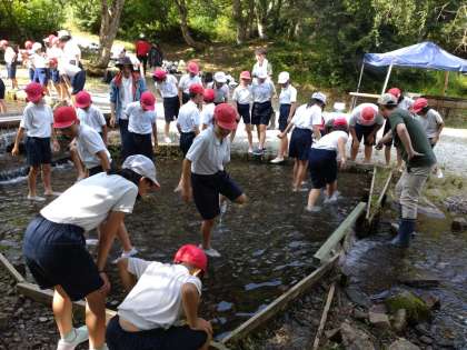 林間学習13 公開日 2024/07/23 更新日 2024/07/23 5年 魚つかみです。とても暑いですが、水はとても冷たくて気持ちいいです。 魚はヤマメとアマゴ、2種類います。しっかり魚をつかむことができるでしょうか。 いいね(0)