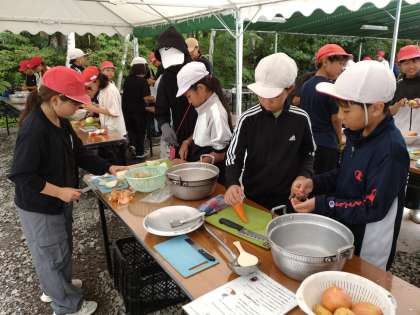 飯盒炊さんです。各班、カレー係、飯ごう係、かまど係に分かれています。