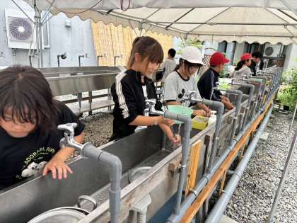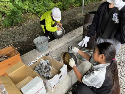 食べた後は、後片付けです。飯ごうも食器もピカピカに磨いています。