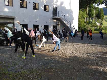 ラジオ体操で、体を起こします。
