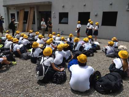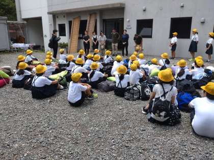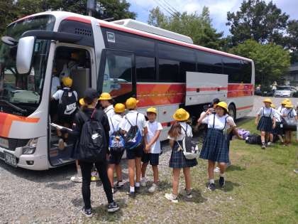 これよりバスに乗って、鶴町小学校へ戻ります。
