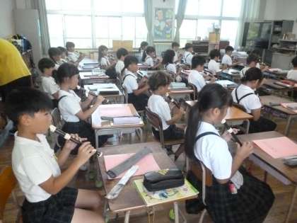2分音符・4分音符 公開日 2024/08/28 更新日 2024/08/28 3年 3年生は音楽科の時間に、リコーダーで指の動きについて練習していました。「ドー・レ—……」各階名での指の押さえ方間違えていなかったでしょうか。 続いて「河はよんでいる」を演奏する前に、2分音符・4分音符の呼び方や拍の数を確認していました。それでは、2分音符の右下に付点がついている音符は何というのでしょうか。 いいね(0)