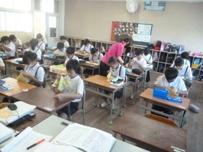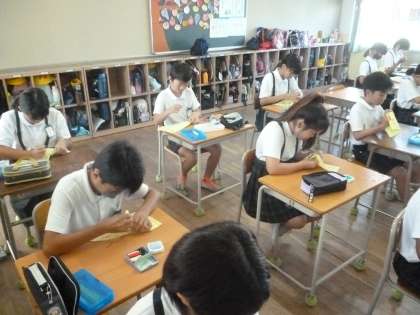 用具や用法、ぬい方を知ろう 公開日 2024/09/04 更新日 2024/09/04 5年 5年1組では家庭科の時間に練習布でなみぬいの練習をしていました。縫う手順の説明を先生から受けて、なみぬいを始めました。縫い終わったら忘れてはいけないのが玉止めです。 この後、返し縫い・半返し縫い・かかり縫いを練習します。目的に合わせて使いこなせるようにがんばってほしいです。 いいね(0)