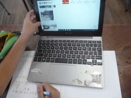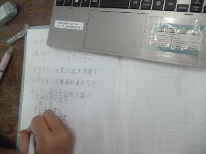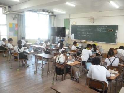 4年2組では社会科の時間に大阪で起こった自然災害についてタブレットで調べていました。6年前の台風21号や大阪府北部地震が検索されたようです。4年生の子どもたちには、ほとんど記憶にないようです。さらに、ジェーン台風も出てきました。当時の被害について調べて、被害を防ぐための人々の工夫についても知ってほしいと思います。