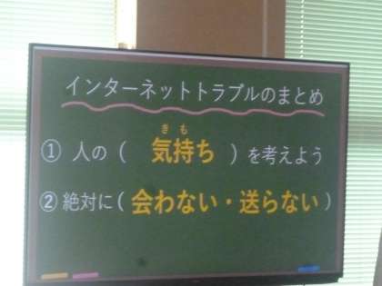 PTAスマホ講習会 公開日 2024/09/06 更新日 2024/09/06 その他 9月6日(金)学習参観終了後、多目的室で「PTAスマホ講習会」が実施されました。講師は、大正警察からお越しいただきました。子どもたちがスマートフォンを使用することが増える中で、健康を害したりトラブルに巻き込まれたりする可能性もあります。親子で参加して、どんなことに気をつければいいのかを学びました。 いいね(0)