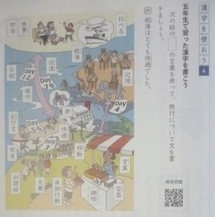 漢字を使って文を作ろう 公開日 2024/09/12 更新日 2024/09/12 6年 6年1組では国語科の時間に、次の絵を見ながら、載っている漢字を使って文を作っていました。絵のテーマは旅行のようです、旅行に関係のある漢字がたくさん載っています。自分も旅行に行った気分で、 分をいくつも作っていました。 いいね(0)