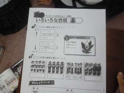 合唱のひびきをきき比べよう 公開日 2024/09/13 更新日 2024/09/13 5年 5年2組では音楽科「合唱のひびきをきき比べよう」に取り組んでいます。声の種類や合唱の形態には、何種類かあるようです。教科書を見ながらワークシートにまとめていました。「じょせいにぶがっしょう」を漢字で書きます。「女性二部合唱」あれ、少し違っています。 この後、「花」のコーラスを鑑賞していました。 いいね(0)