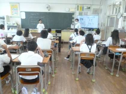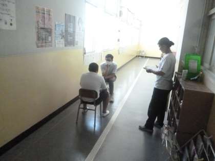 6年1組では英語科の時間にSpeaking Testがありました。「What did you do in summer?」「How was it?」先生からの問いかけに答えた後、次は自分から先生へ問いかけます。会話の中で、これまでに習った表現を使うと評価が上がるそうです。では、一人ずつ廊下に出て、Speaking Test開始です。