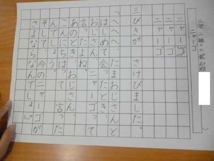ニャーゴ 公開日 2024/09/18 更新日 2024/09/18 2年 2年2組では国語科「ニャーゴ」を学習しています。朝タイムで視写をした場面、「先生の話をしっかり聞いていなかった3匹のネズミが、猫と出会っても怖がらなかった場面」を音読しました。隣のお友だちの音読を聞いて、良いと思ったことを伝え合います。ネズミの面白い様子をうまく表現できたでしょうか。 いいね(0)