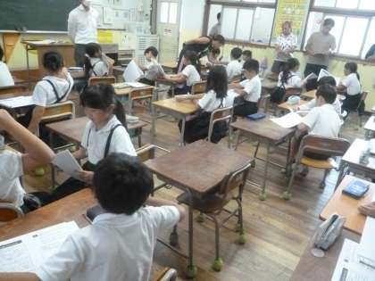 そろって いるけど 公開日 2024/09/24 更新日 2024/09/24 1年 1年生は道徳科「そろって いるけど」を学習しています。いつもそろっているトイレ用のスリッパが乱れていたり、学級用のボールが戻されず運動場にほったらかしになっていたりしました。尾の日は休んでいたけんじ君が、いつも片付けてくれていたことがわかりました。 このことを通して、みんなで使うものを片付ける時に気をつけることについて考えました。 いいね(0)