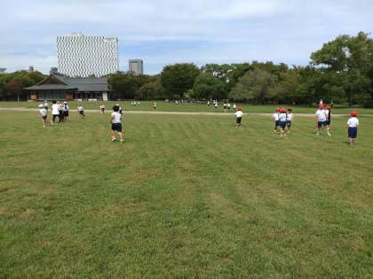 お弁当とおやつを食べた児童は、お友だちと鬼ごっこなどをして遊んでいます。