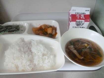 9月27日(金)の給食は、ごはん・牛乳・酢豚・中華みそスープ・焼きのりです。