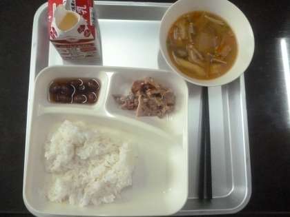 9月30日(月)の給食は、ごはん・牛乳・豚肉の甘辛焼き・冬がんのみそ汁・金時豆の煮ものです。