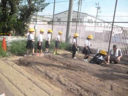 だいこんの種まき1 公開日 2024/10/02 更新日 2024/10/02 1年 1年生が、だいこんの種をまきます。1年生にとっては初めてなので、地域の方が丁寧に説明してくださいました。1月、十分に育って収穫するときが楽しみです。 いいね(0)