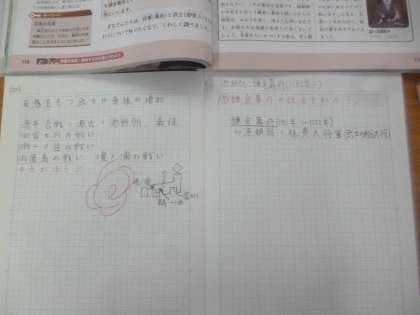 6年1組では社会科の時間に、鎌倉幕府の政治について学習していました。源頼朝の役職「征夷大将軍」の「夷」には大きな意味があるようです。また、約140年続いた鎌倉幕府ですが、その実情には大きな変化があったようです。教科書の資料をもとに、鎌倉時代の背景を考えていました。