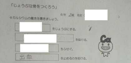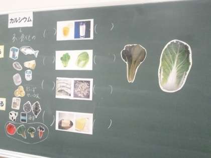 じょうぶな骨を作ろう 公開日 2024/10/08 更新日 2024/10/08 6年 6年2組では栄養指導「じょうぶな骨を作ろう」に取り組んでいました。「カルシウム」の働きについて知っていることを出し合いました。みんな結構知っているようです。 では、次のどちらの食品がカルシウムを多く含むでしょうか。「ジュースと牛乳」「小松菜と白菜」「イワシとちりめんじゃこ」「豆腐とチーズケーキ」、カルシウムを多く含む意外な食品もあるようです。これからも栄養バランスに気を配りながら生活してほしいです。 いいね(0)