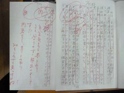 おもしろいところを解説しよう 公開日 2024/10/08 更新日 2024/10/08 5年 5年1組では国語科「注文の多い料理店」の学習が終わります。最後に、おもしろいと思ったところの解説文を書いていました。表現を工夫したところや、戸に書かれた内容の本当の意味についてなど、解説文がしっかりとノートに書かれていました。グループで読みあい、全体でも発表していました。 いいね(0)